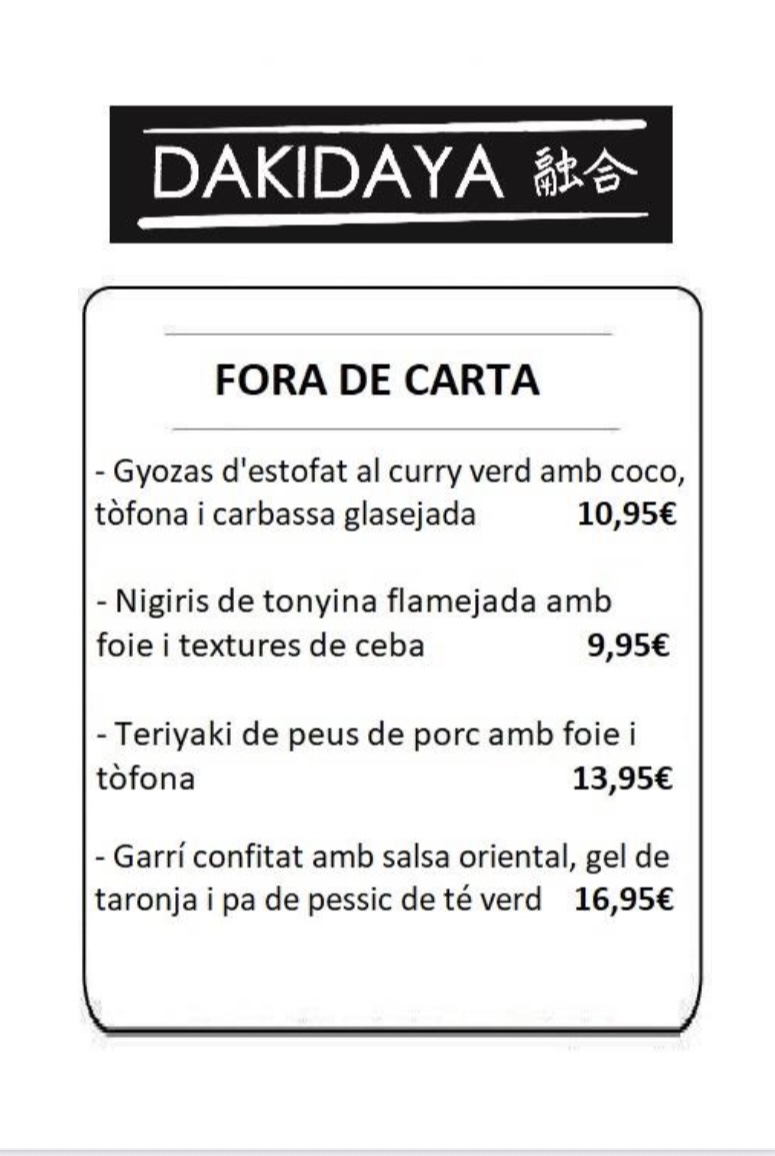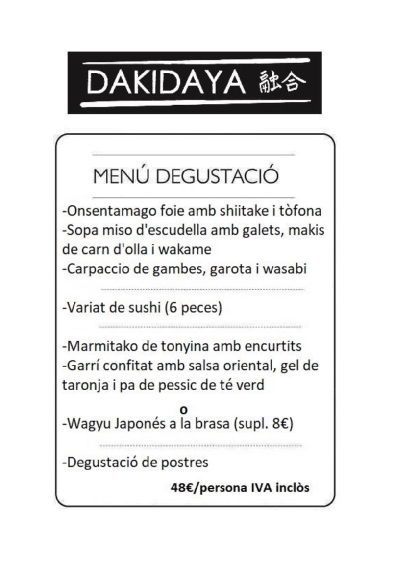 Benvinguts a Dakidaya, un nou concepte de cuina fusió Japonesa i Mediterrània. Dakidaya neix l'any 2013 presentant un concepte renovat de restauració. Els seus orígens van ser com a Associació Gastronòmica, on es realitzaven esdeveniments de menú degustació a casa del Xef. L'any 2016, després de tres anys, vam decidir obrir restaurant per poder oferir un servei diari mantenint l'essència dels nostres inicis.