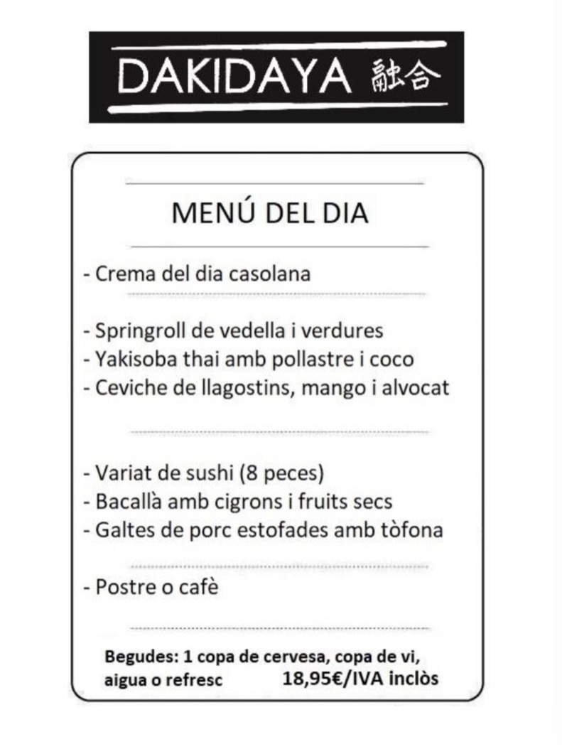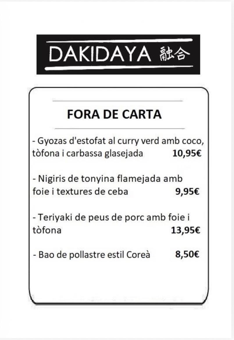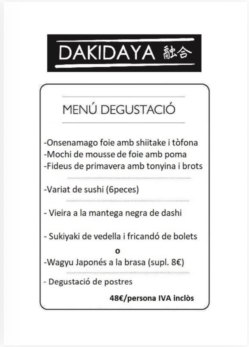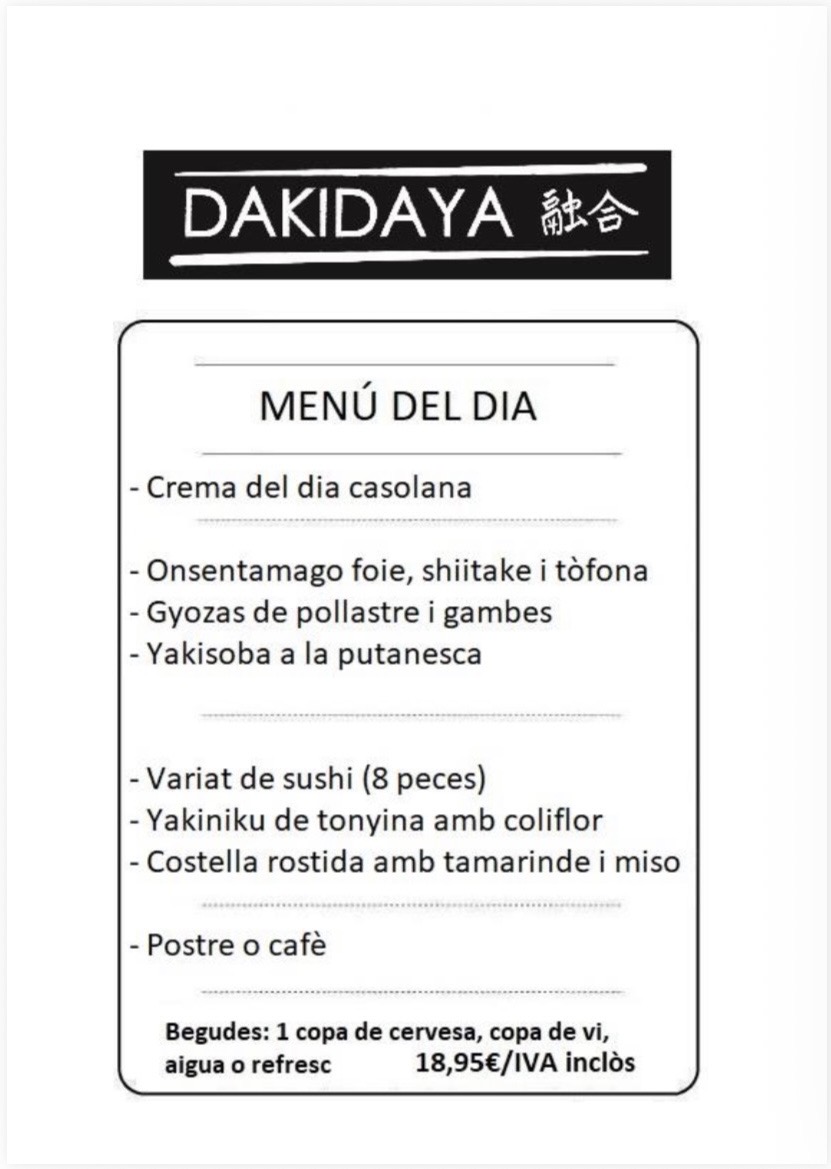 Benvinguts a Dakidaya, un nou concepte de cuina fusió Japonesa i Mediterrània. Dakidaya neix l'any 2013 presentant un concepte renovat de restauració. Els seus orígens van ser com a Associació Gastronòmica, on es realitzaven esdeveniments de menú degustació a casa del Xef. L'any 2016, després de tres anys, vam decidir obrir restaurant per poder oferir un servei diari mantenint l'essència dels nostres inicis.